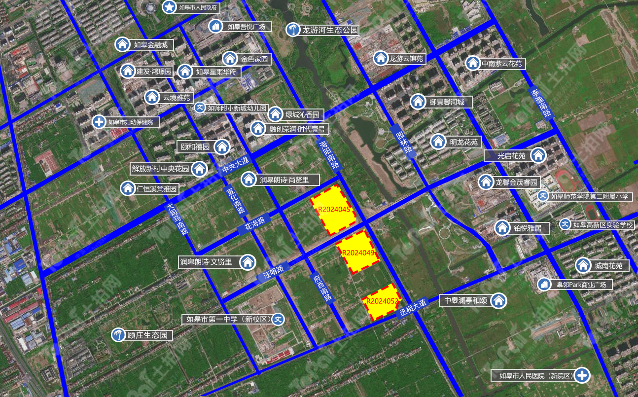 如皋市城南板块将出让5宗优质宅地,编号R2024045、R2024049、R2024052、R2024054和R2024055,总出让面积21.4万㎡,起始总金额25.68亿元,起拍楼面价最高6667元/㎡。
