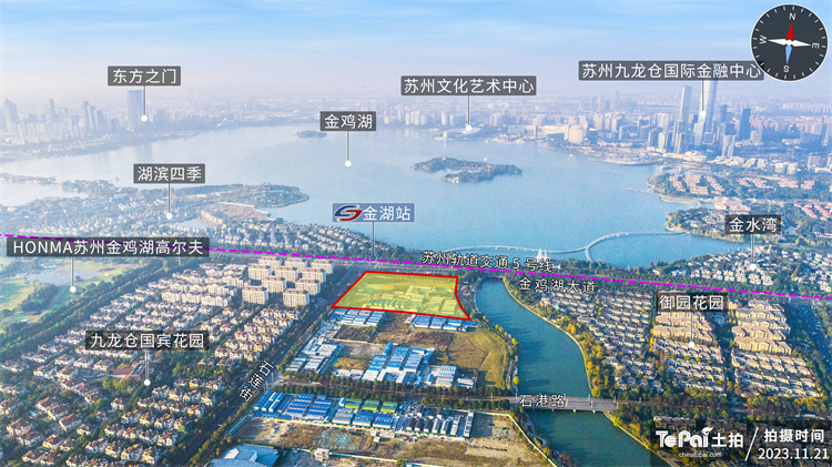 园区双湖板块核心重磅低密宅地,起拍楼面价55000元/㎡,位于九龙仓国宾一号东侧、苏州御园西侧。