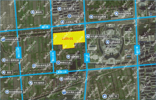 地块编号2105-01,位于如东县富春江路北侧、井冈山路东侧,占地面积58203㎡(约87.3亩),规划商住用地,出让年限70年,容积率1.0-2.0,起拍总金额61538.0319万元,折合楼面价5287元/㎡。