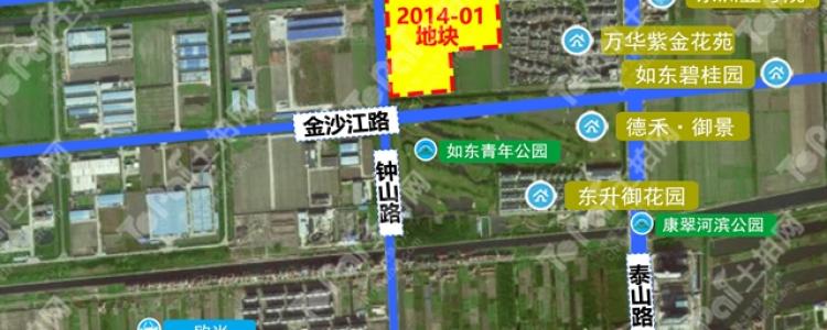 地块编号为2014-01,位于金沙江路北侧、钟山路东侧,容积率1.0-2.0,起拍楼面价5506元/㎡,地块起拍总金额约7.4亿元。